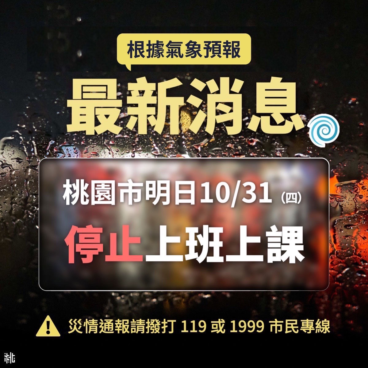 因康芮颱風來襲,依政府公告已達停班標準,10/31(四)全院門診、復健暫停服務!